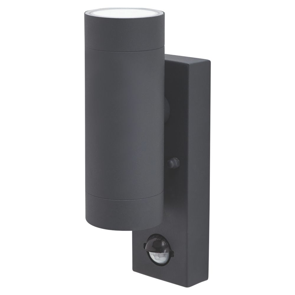 Brushed Stainless Steel Gu10 Pir Up Down Wall Light 5w Outdoor Wall Lights Screwfix Com