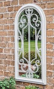 Large Stone Coloured Arch Garden Mirror 150 X 81cm Features A Stone Cloured Chapel Window Look All Garden Mirrors H Garden Mirrors Outdoor Mirror Garden Wall