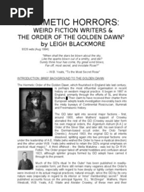 Hemetic Horrors Weird Fiction Writers And The Order Of The Golden Dawn Arthur Machen W B Yeats