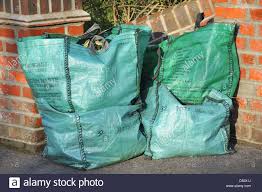 Garden Waste Green Sacks On Pavement Awaiting Collection By Wokingham Stock Photo Alamy
